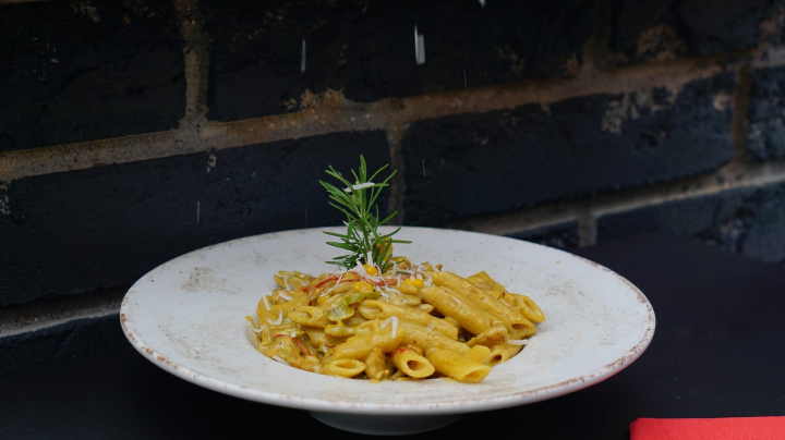 Tavuk Parçaları, Mantar, Özel Fesleğen Sos, Krema, Parmesan Peyniri İle Servis Edilir.